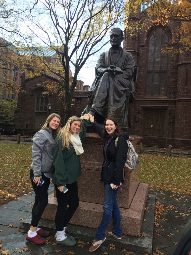 Our first Thanksgiving there, my parents and sister came to visit, as well as Jack’s twin sisters. We saw a ton of Gilmore Girls staples, including Rory’s residence, Branford Hall, which isn’t too far from that lucky toe at Old Campus.