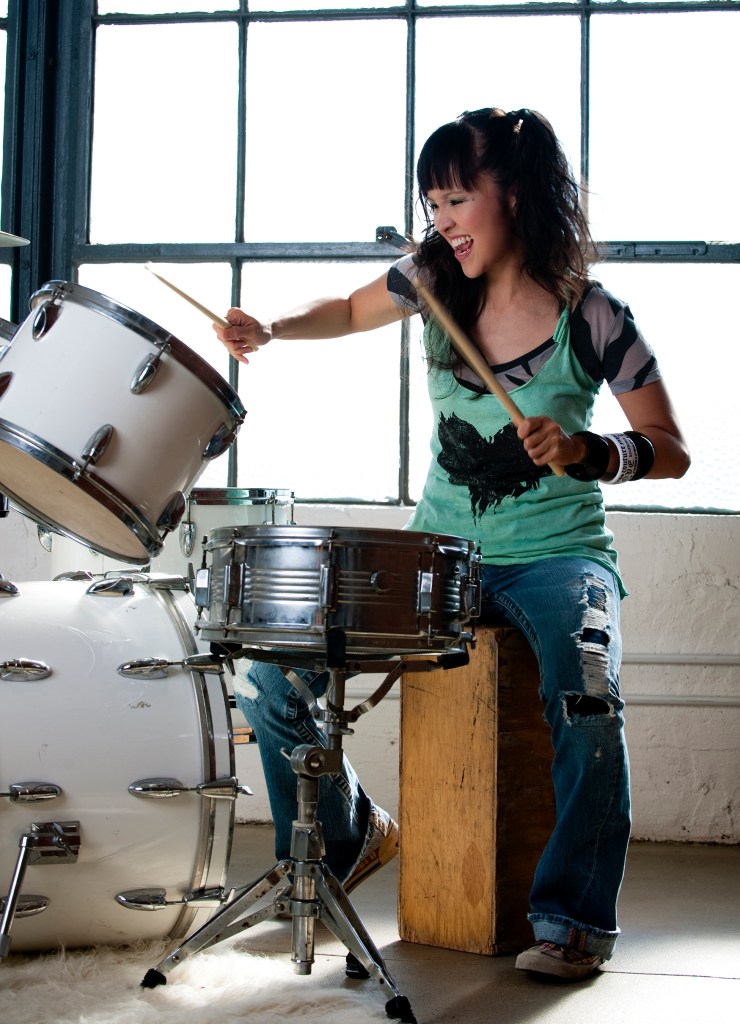Tania: I was like, ‘What? I get to play the drums?!’ That was the best thing because when I was in Indonesia, we didn’t have much money. My dad said, ‘But you can take any classes you want in music.’ So I tried the guitar and the piano and the organ. And then one day–I feel like I’m always this person–I took the guitar classes for, like, two years, and I was already at the top level, and I was about to perform in two weeks to a huge audience. And then, during my rehearsal, I overheard in another room, somebody was playing the drums. And I was like, ‘What is that?’ I took a look and I loved it, and, kind of like the accounting thing, I said no to the guitar. I gave up right away. I said I wanted to do the drums. That’s what I really want! And so I took the drums classes for, like, a year, and it was so amazing.