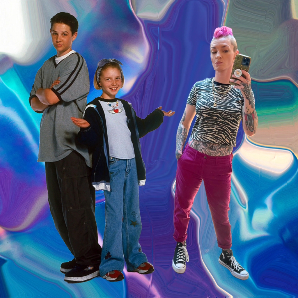 Of course, PAT, at one moment, is able to give [Angie] her freshly laid out clothes. So I want to talk about your fits as a DCOM star. You have great ’90s button-downs. You could rock a bandana and the pigtails so well. You’re just so adorable.